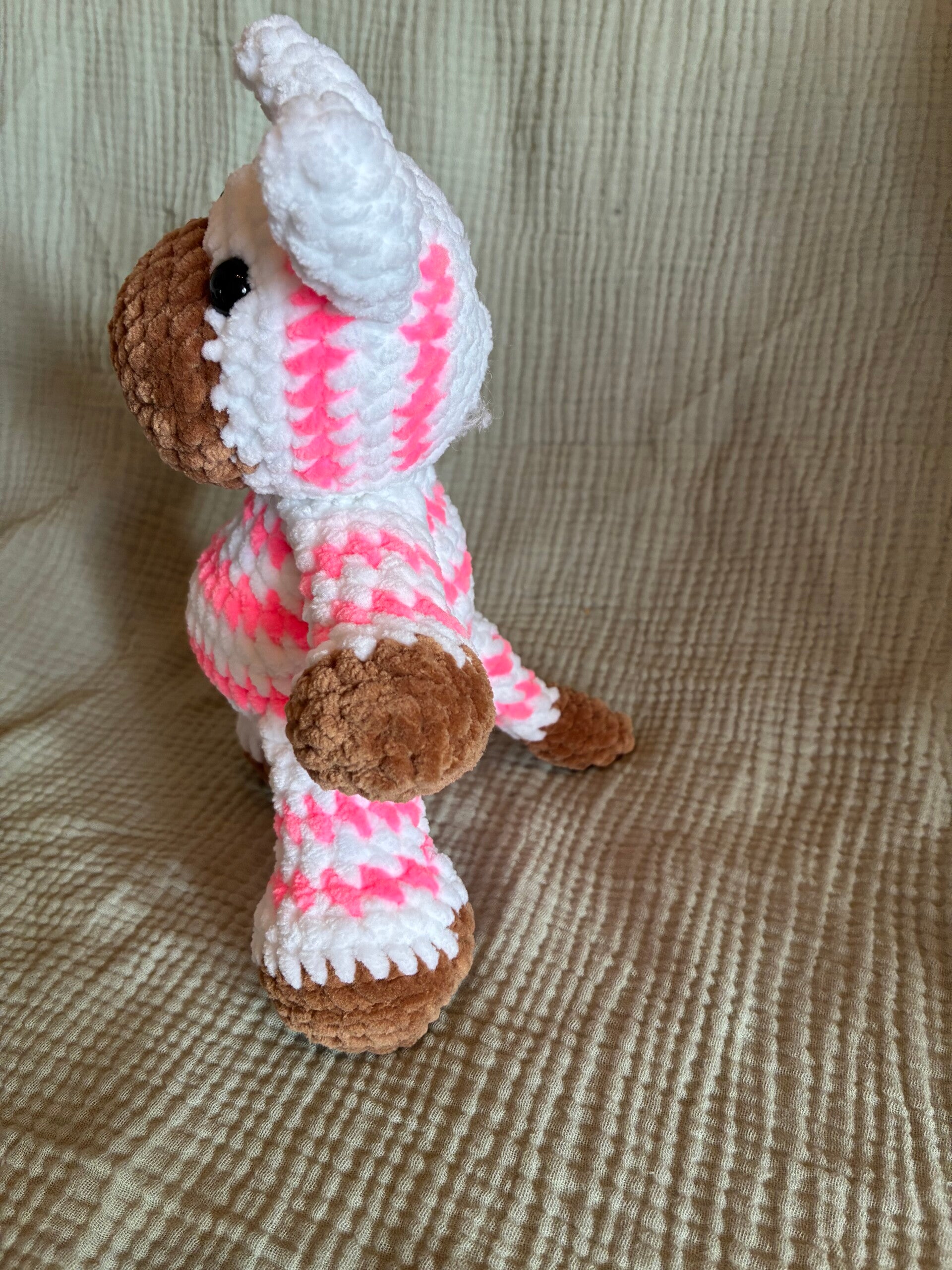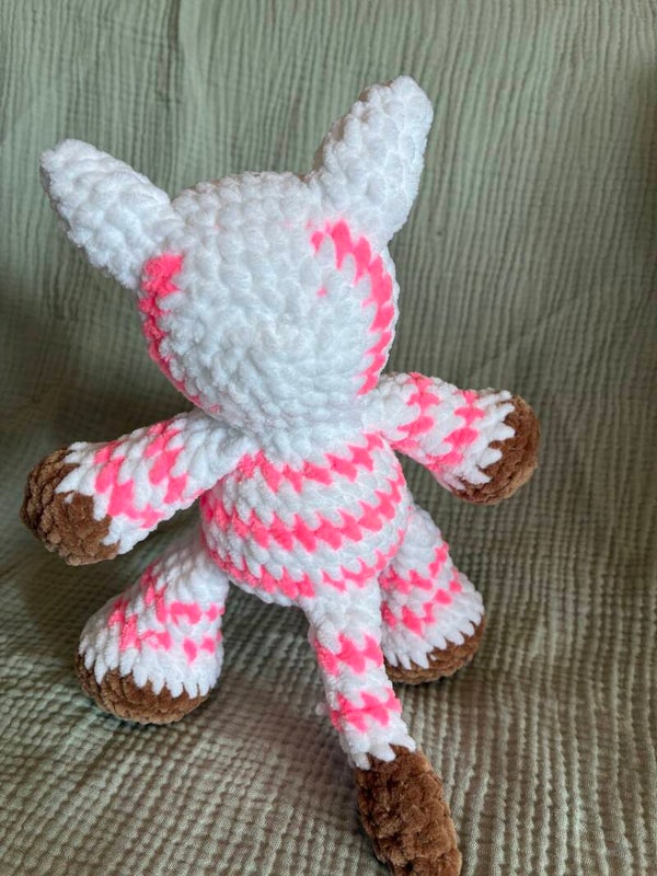Dieses süße Zebra ist ein echter Hingucker mit seinem Pink-Weiß gestreiften Körper und den braunen Akzenten an Maul, Pfoten und Schweif. Durch die kuschelig weiche Textur und die liebevollen Deteils ist es perfekt zum Liebhaben, Spielen oder einfach zum dekorieren.