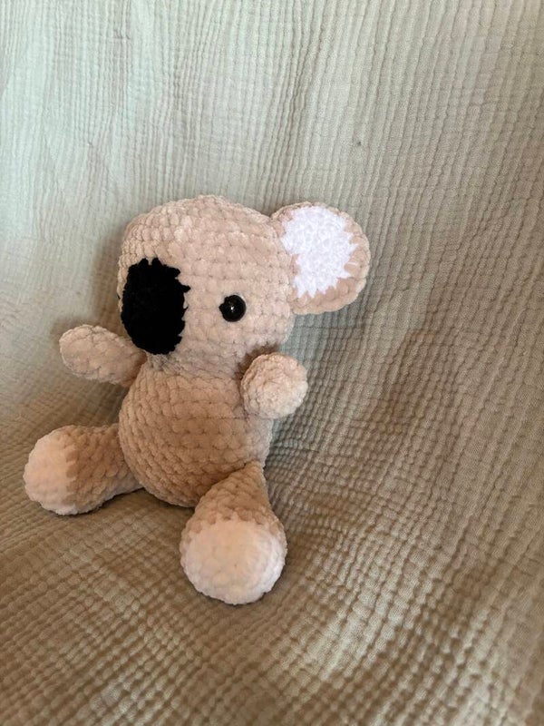 Dieser handgemachte Koala ist der perfekte Kuschelfreund - weich, knuffig und mit seinem typischen großen schwarzen Nasenfleck einfach zum verlieben. Gefertigt aus samtigem Chenillegarn, ist er besonders sanft zur Haut. Die niedlichen Details wie die großen Ohren mit weißen Innenseiten und die glänzenden Sicherheitsaugen machen ihn zu einem liebevollen Begleiter für Groß und Klein.