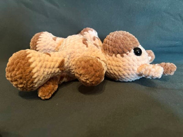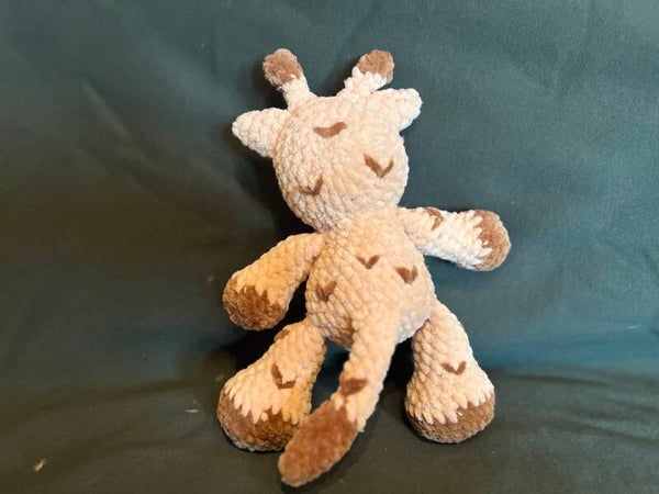 Diese liebevoll handgefertigte Giraffe aus weichem Chenillegarn bringt mit ihrem Beige und den typischen braunen Flecken Wärme und Farbe in jedes Kinderzimmer. Die großen Knopfaugen verleihen ihr einen freundlichen Ausdruck, während die beweglichen Gliedmaßen (nach oben und unten) perfekt zum Kuscheln und Spielen geeignet sind.