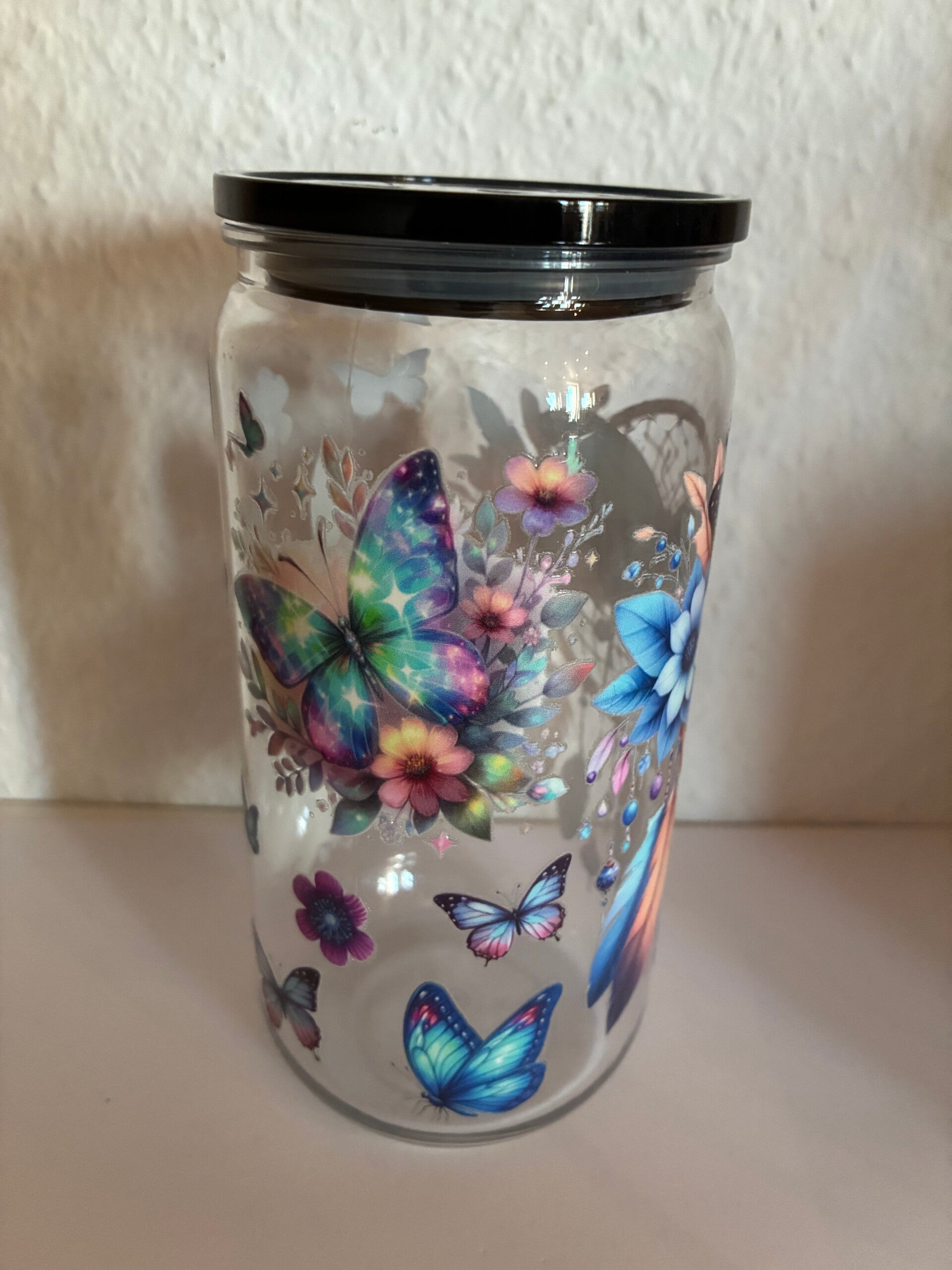 Die Becher bestehen aus stabilem, transparentem Kunststoff und sind durch den DTF-Druck-Aufkleber dauerhaft schön. Der Druck ist farbintensiv, abriebfest und sorgt für eine edle, moderne Optik. Jeder Becher wird mit Liebe zum Detail gefertigt – so wird er zum ganz persönlichen Lieblingsstück.