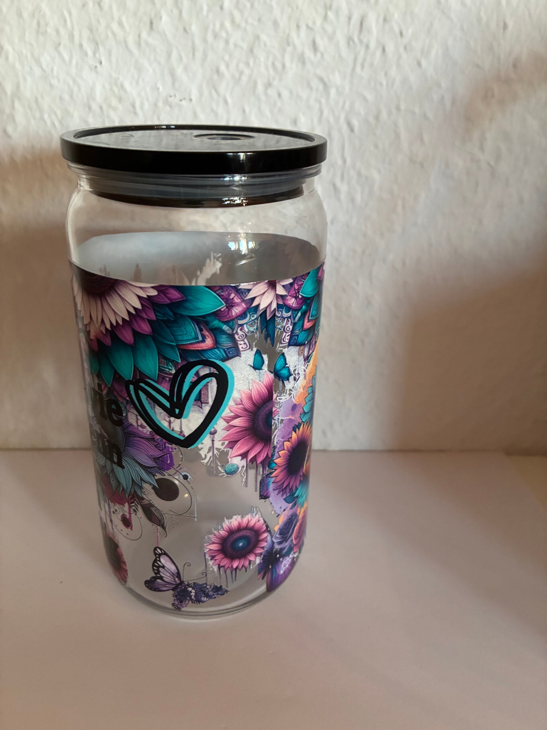 Die Becher bestehen aus stabilem, transparentem Kunststoff und sind durch den DTF-Druck-Aufkleber dauerhaft schön. Der Druck ist farbintensiv, abriebfest und sorgt für eine edle, moderne Optik. Jeder Becher wird mit Liebe zum Detail gefertigt – so wird er zum ganz persönlichen Lieblingsstück.